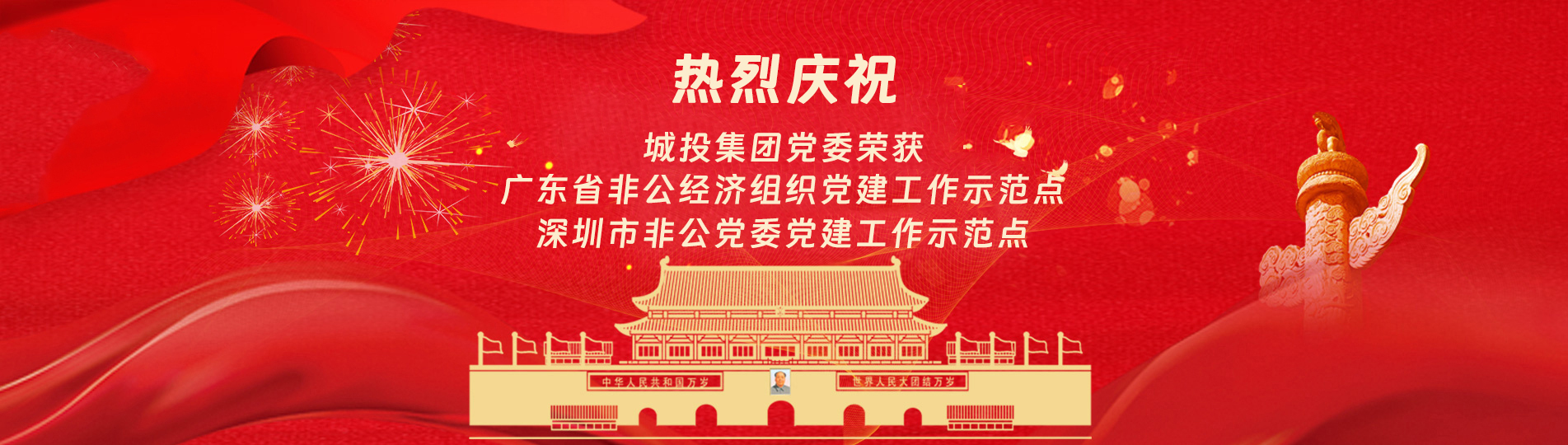 在上級黨委的正確領導下,在城投集團的大力支持下,集團黨委緊緊圍繞企業(yè)發(fā)展戰(zhàn)略,將黨建引領核心貫穿始終,以“五心”工程(即思政建設“核心”工程、經(jīng)營發(fā)展“中心”工程、企業(yè)文化“向心”工程、黨建品牌“匠心”工程、服務基層“愛心”工程)為抓手,大膽探索,勇于突破和創(chuàng)新,不斷形成城投黨建特色,有效輸出城投實踐經(jīng)驗,充分發(fā)揮“紅色引擎”作用,先后獲得“深圳市非公黨委黨建工作示范點”、“深圳市兩新組織黨建工作示范點”、“深圳市文明單位”、“深圳市先進基層黨組織”、“廣東省非公有制經(jīng)濟領域黨建工作示范點”等榮譽稱號。